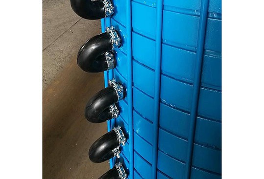 熱氣流的冷凝,通過熱氣流和冷卻水的逆向流動進行交換。片間距小而均勻,介質反復地擴散,會合流,提高了搪玻璃冷凝器冷凝效率并消除了氣流外泄現象。